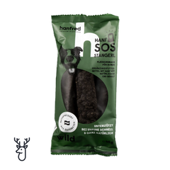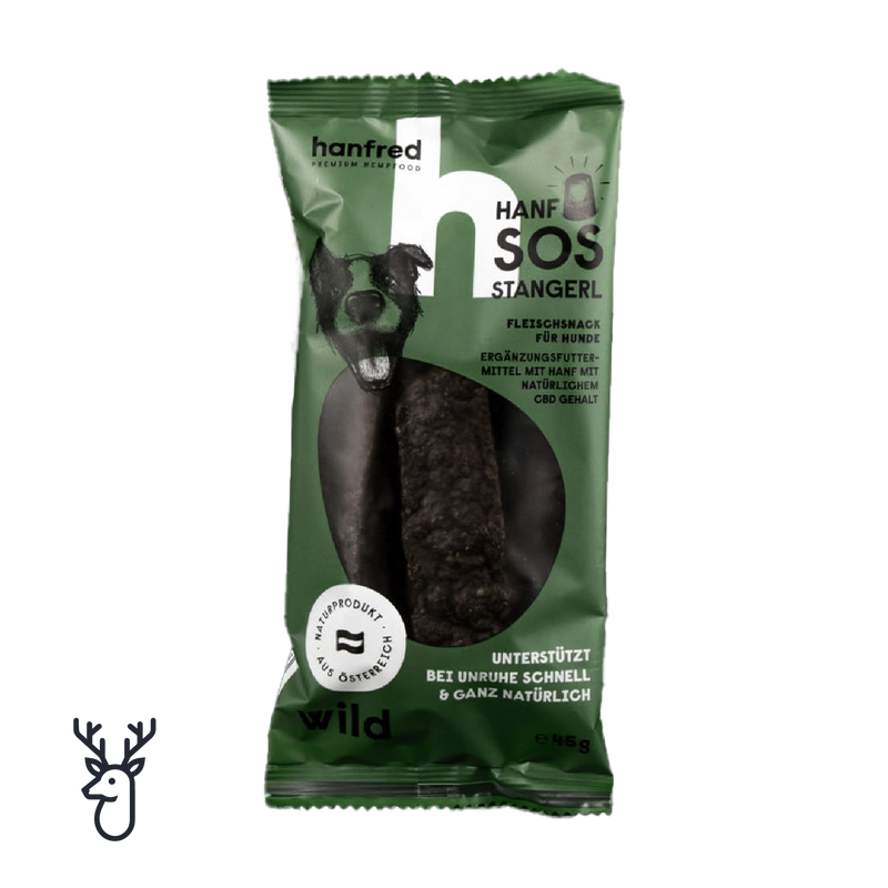 Hanfred SOS Sticks for dogs – perfect for on the go and in particularly stressful situations. Quick and natural relief from restlessness! Dried venison mixed with hemp powder! Try it now!