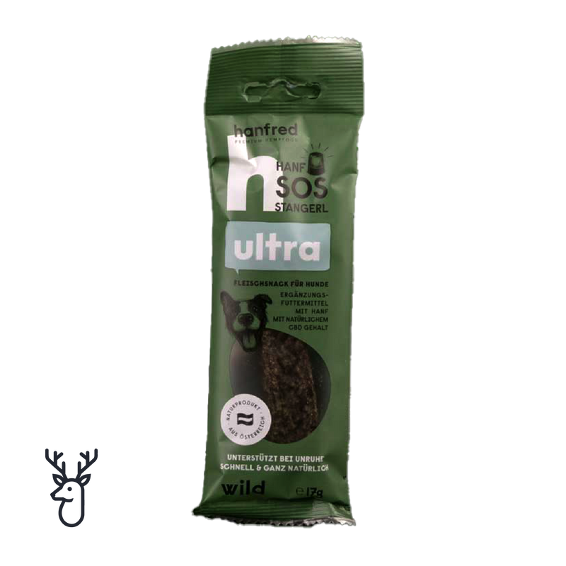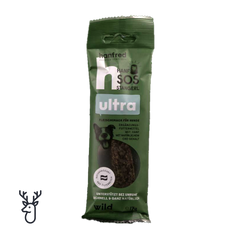 The SOS Ultra Sticks are perfect for on the go and in particularly stressful situations. Dried venison mixed with hemp powder.