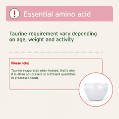 Dogs are able to synthesize taurine from the amino acids methionine and cysteine themselves, unlike cats. Depending on age, weight and energy levels, a dogs' taurine requirements can vary - especially in larger dog breeds, such as Newfoundlands, taurine deficiency can often be observed. Often, taurine is not present in sufficient quantities in many ready-to-eat dog foods. Taurine can balance the daily requirements of your pet and has an additional positive effect on normal heart function.